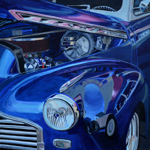 The Car Show series is a tribute to the elegance and soul of classic automobiles—but look closer, and you'll see the real subject is the reflection. These highly detailed acrylic paintings use the glossy surfaces of vintage cars to tell hidden stories: a passerby, a tree-lined street, a moment suspended in chrome. For car lovers, the familiar curves and craftsmanship are lovingly honored; for art collectors, each piece invites a second glance—and a deeper meaning. The cars are icons, but the reflections carry the emotion, memory, and quiet poetry that make this series truly timeless.